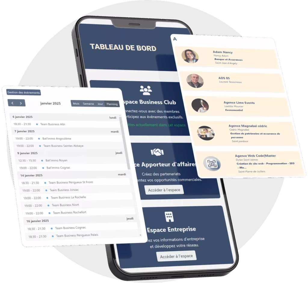 Découvre notre application mobile, ton outil indispensable pour optimiser ton adhésion : gestion des contacts, événements, recommandations et plus encore !